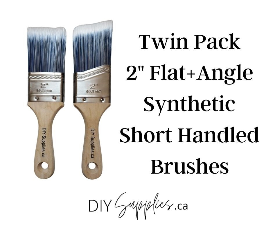 These Short Handled Synthetic Flat Brushes are high quality, professional paint brushes that apply paint, wax and finishes beautifully. These synthetic brushes have great response with spring back and bend recovery which helps with retaining the natural form and shape of the brush! The wooden handles are only 4" so they are easy to hold and great for getting into tricky places. With this twin pack you get an angle brush and a flat brush to do it all!