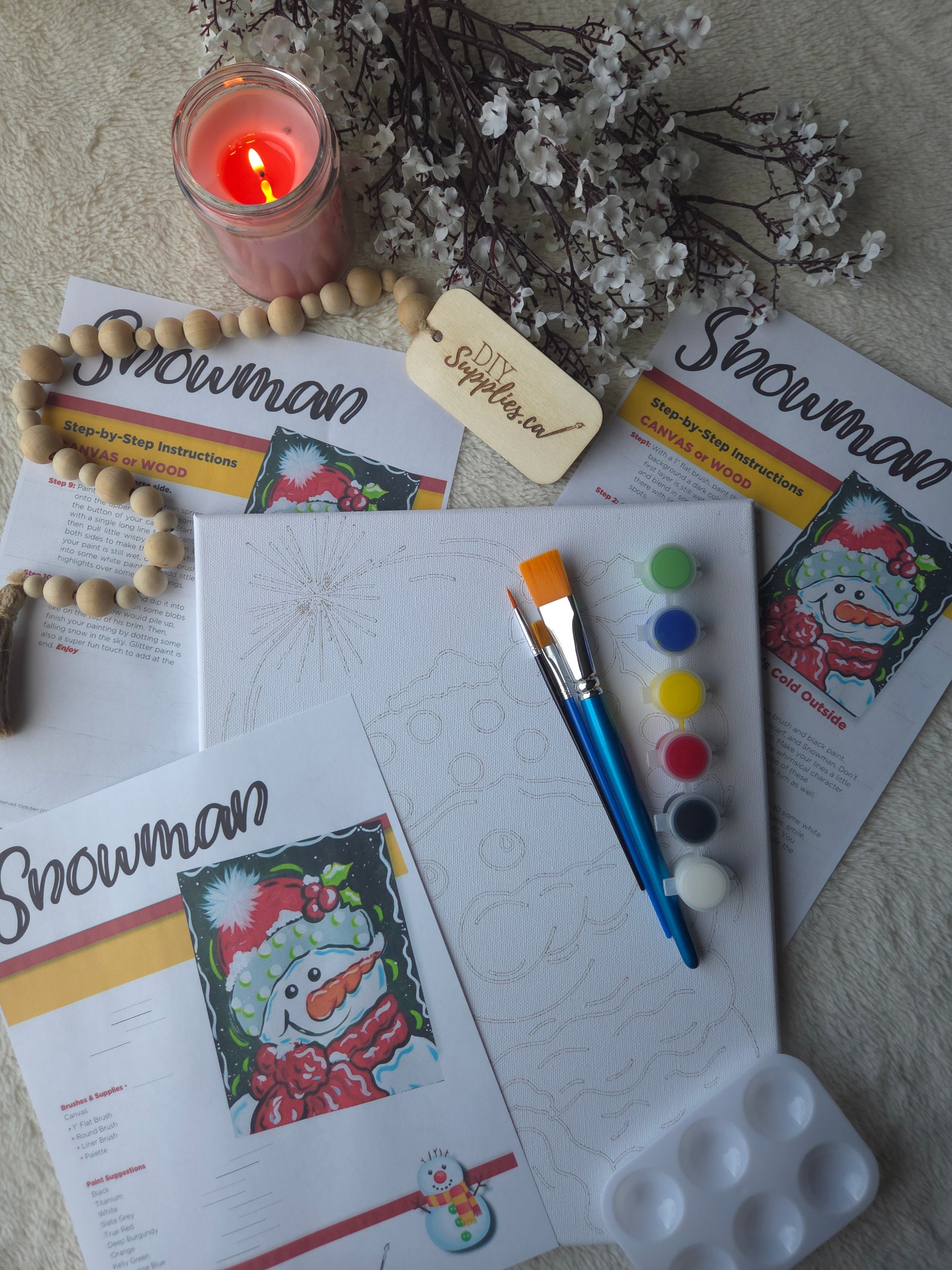 Enjoy a fun "Arty Party Paint" night with this beautiful canvas painting kit. This cheerful paint party kit features an adorable snowman bundled up in a bright hat and scarf, glowing with playful winter charm. With bold colors and fun details, it’s an easy, joyful design that painters of all ages will love bringing to life. Build a party that's right for you. Select the number of guest kits you will need. Your price gets better the more guests you have. Get your party started!!!