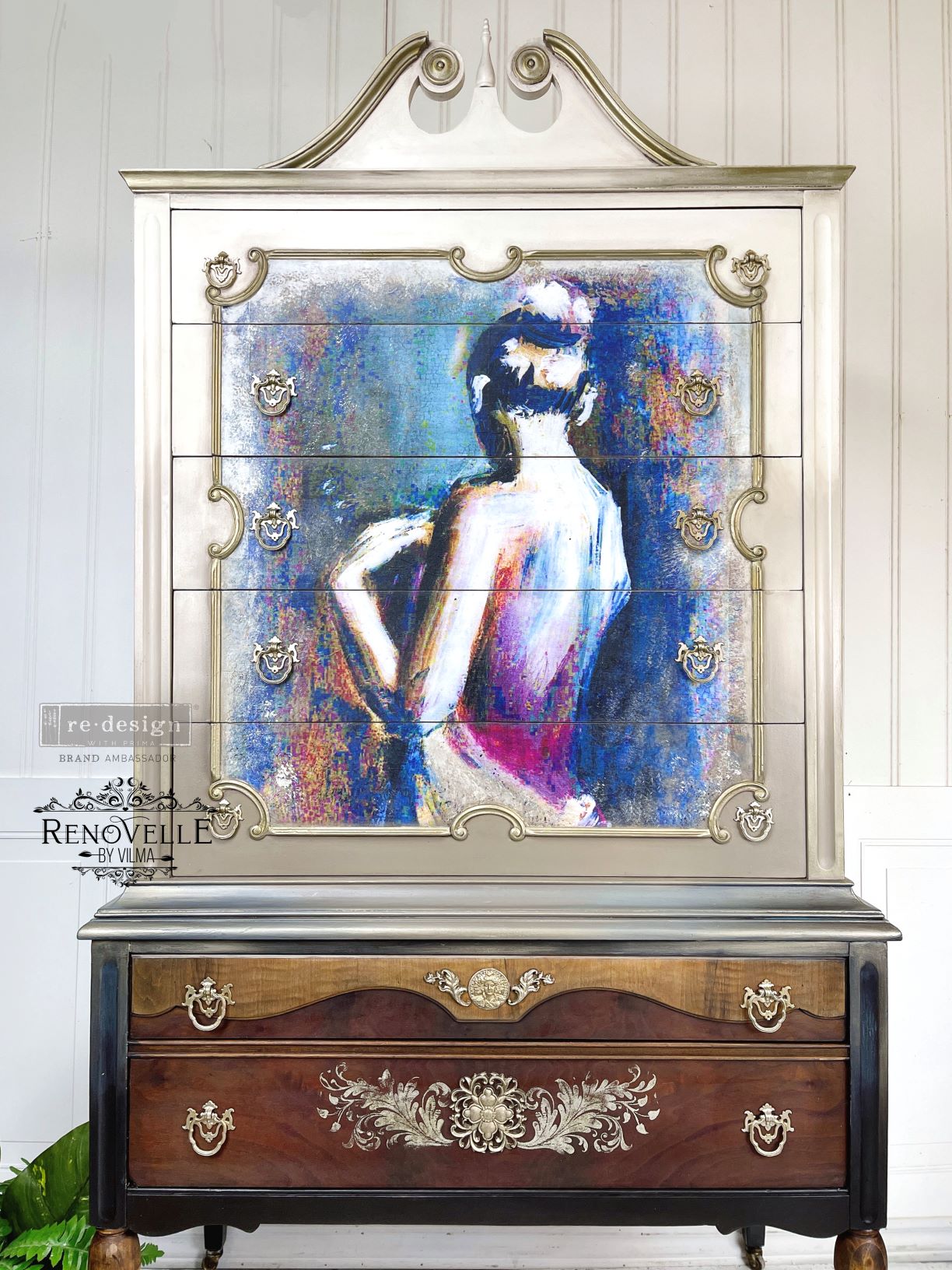 Re·Design Rice Paper. This beautiful sheet is a delicate, thin paper made from mulberry paper fibers, a renewable resource. Known for its beautiful ability to blend into any surface, Re·Design Rice Paper is perfect for collaging, and layering, to seamlessly blend onto your furniture, walls, and home decor pieces. Use to create one-of-a-kind, blended, and detailed pieces, with little or no thickness and texture. Re·Design Rice Paper features a delicate, thin composition, making it easier to cut and alter for even the smallest projects.