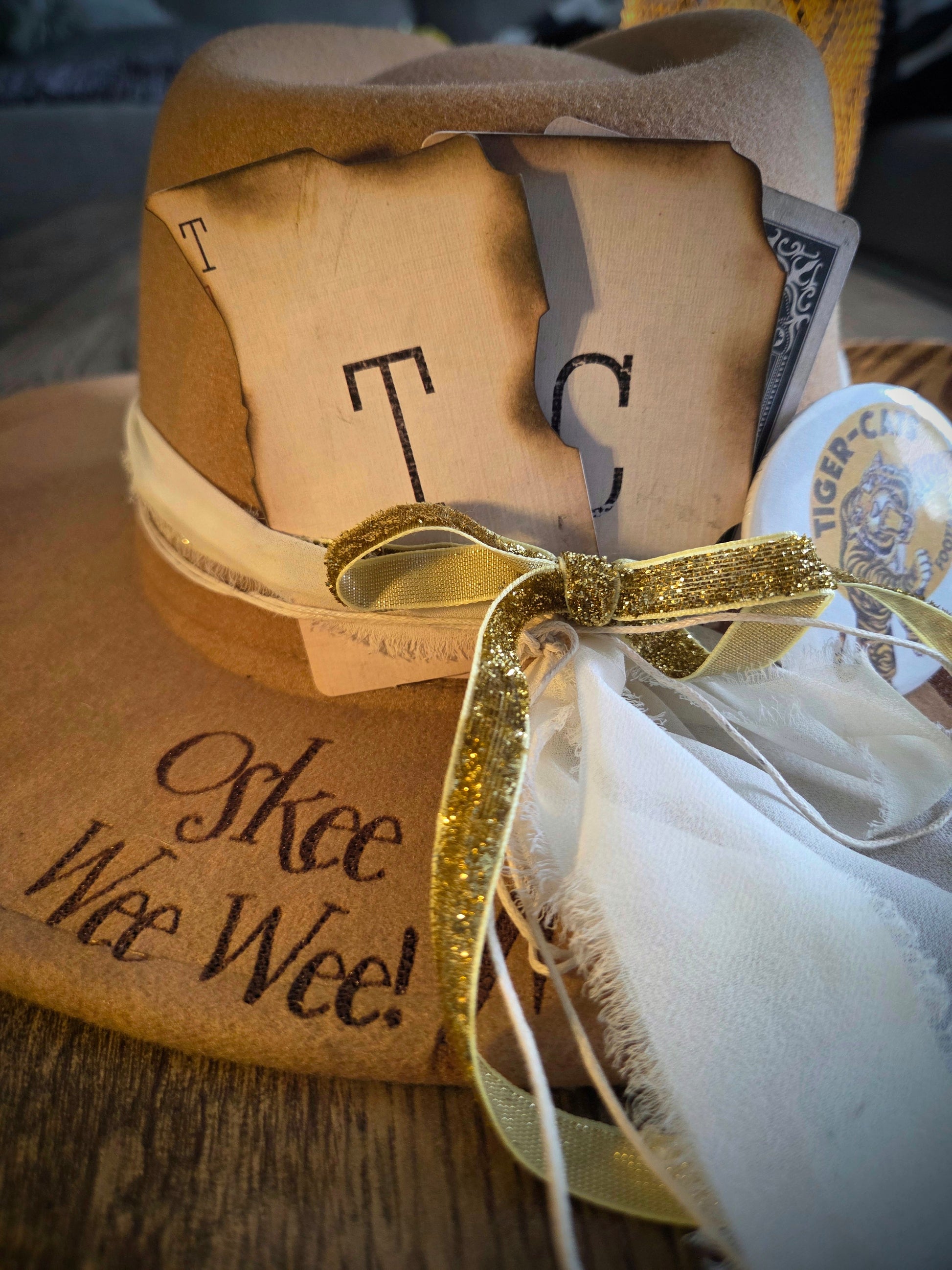 Each hat is carefully hand-burned in house and can be left natural. It also can be finished with painted details, trims, or accents to match your style by you or us!