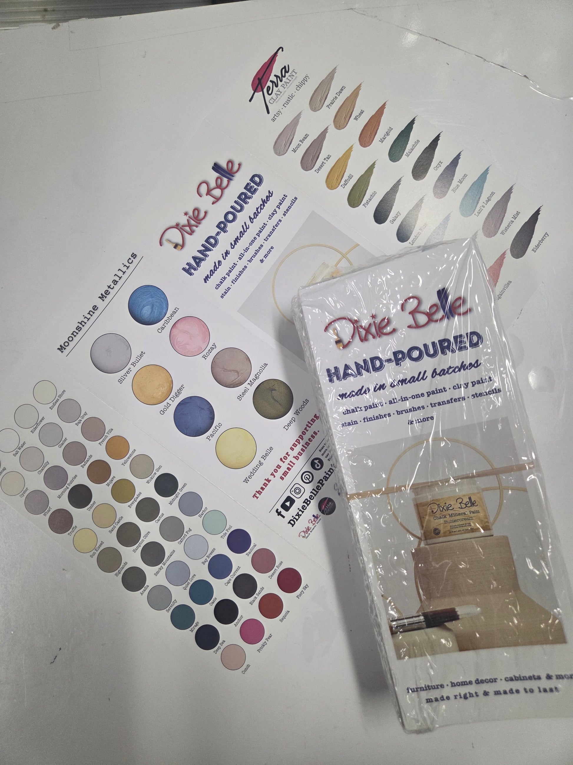 Dixie Belle Color Card 50 pack. New booklet with all the CMP colors, Moonshine Metallics, Silk, Terra, Voodoo Gel Stain and No pain Gel Stain Color guides.