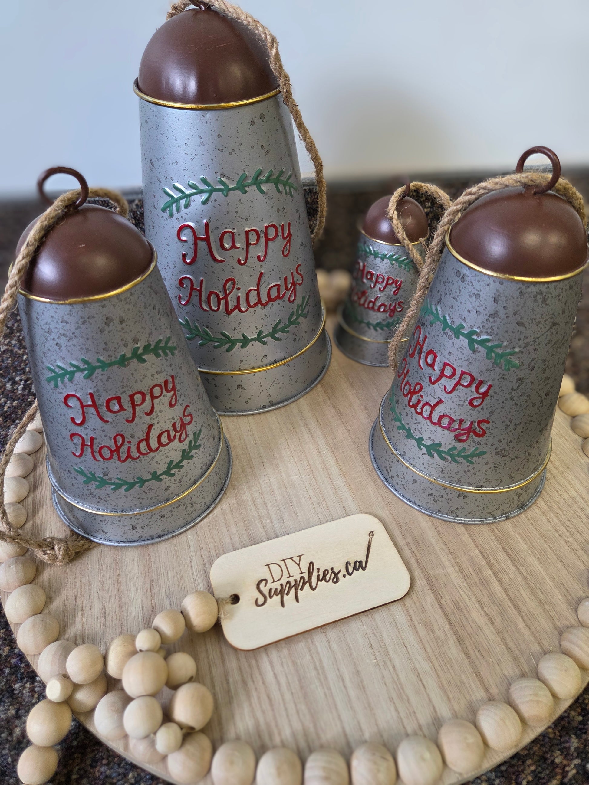 Happy Holidays Set of Metal Bells. Beautiful decor for wreaths or garlands.