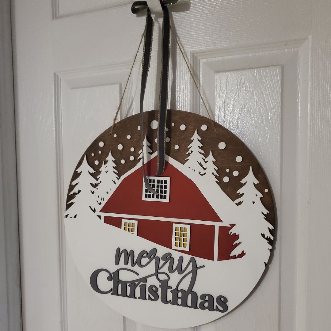 "Make and Take" Kit "Merry Christmas Winter Scape" Christmas Decor sign kit. This kit is easy and oh so fun to complete!!! This is a make at home sign kit! . Includes the sign unpainted with all of the layer cuts and elements for a 16 inch round sign and all your paints and a brush. We ship kits right to you! Order several for a fun paint night!
