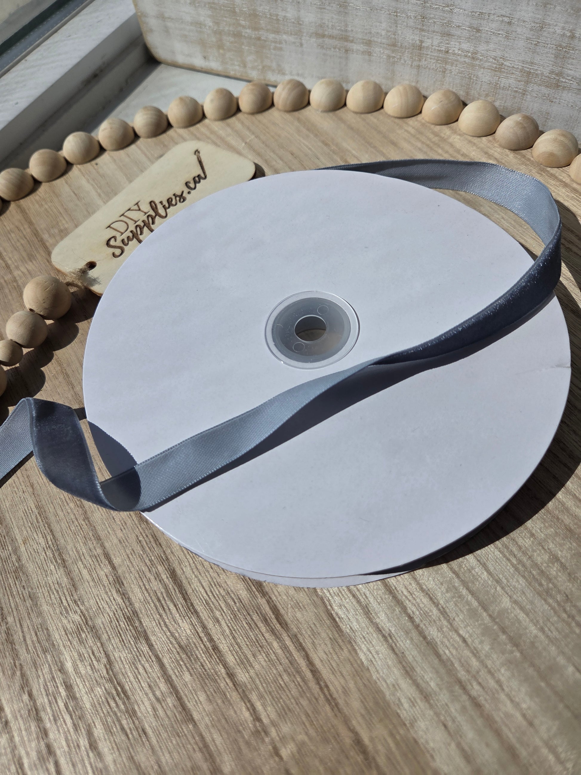 Velvet Ribbon 5/8" x approx 20 yards Dusty blue but looks grey to us.